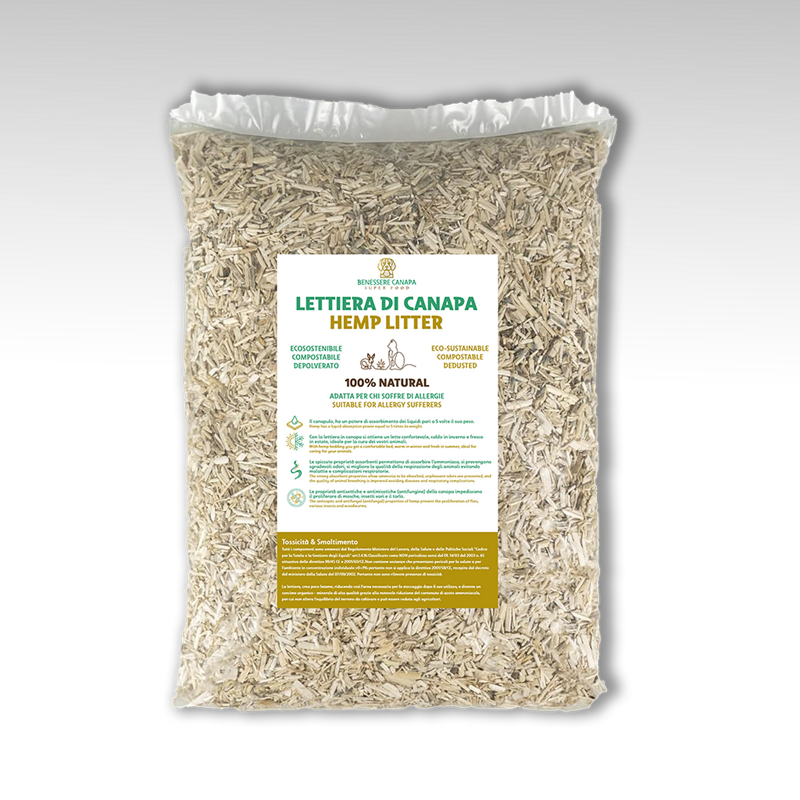 Le lettiera per piccoli e grandi animali è realizzata esclusivamente con canapa 100% italiana.
